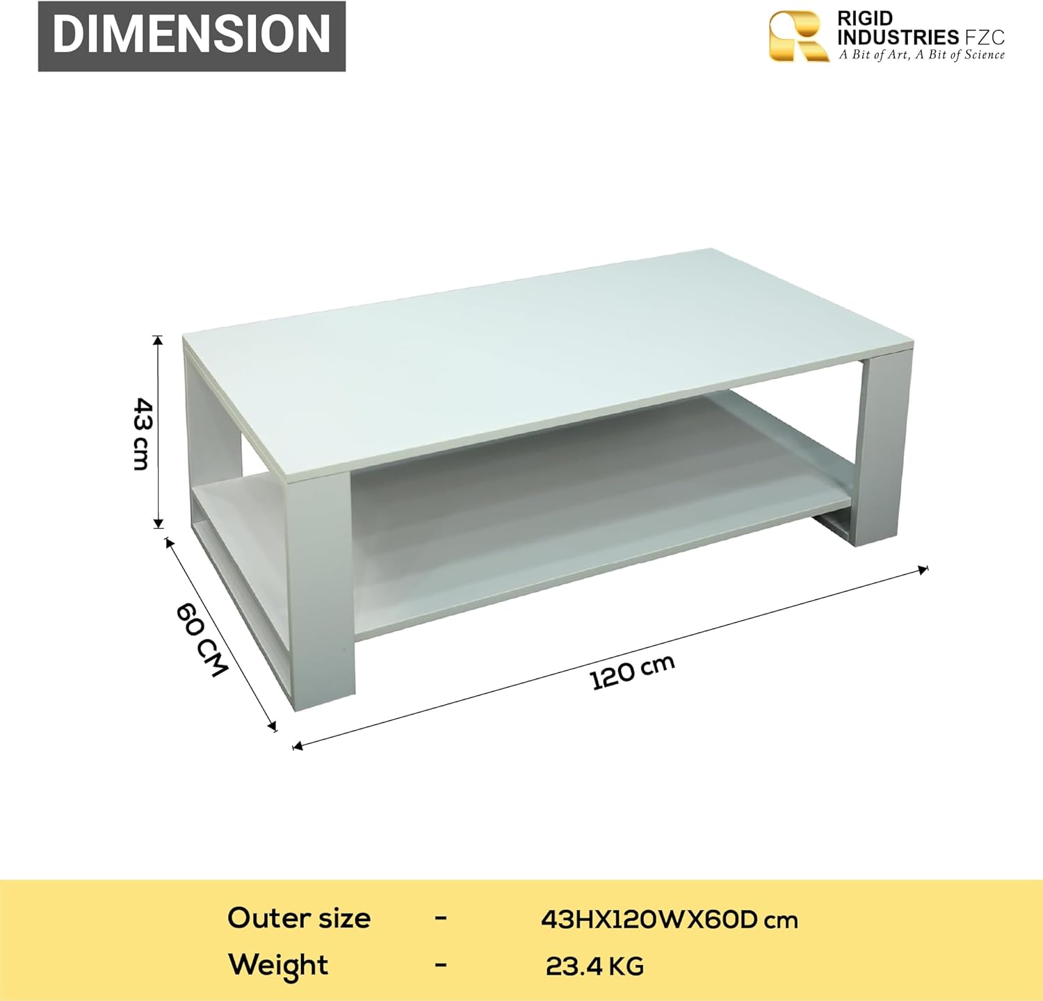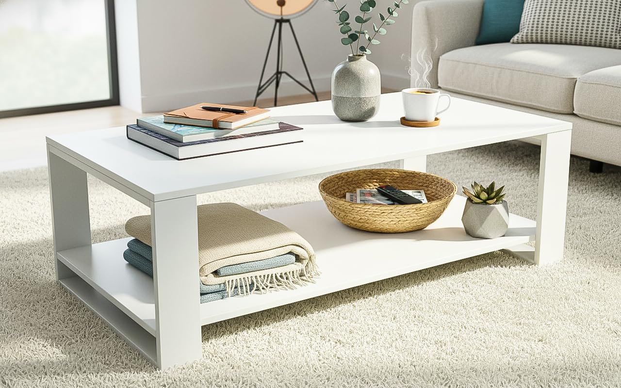 Be the first to review “Coffee Table with White MDF | Pre-Assembled, 2 Compartments, Leg Bush Included | Modern Living Room Center Table (H43 x W120 x D60 cm)” Cancel reply