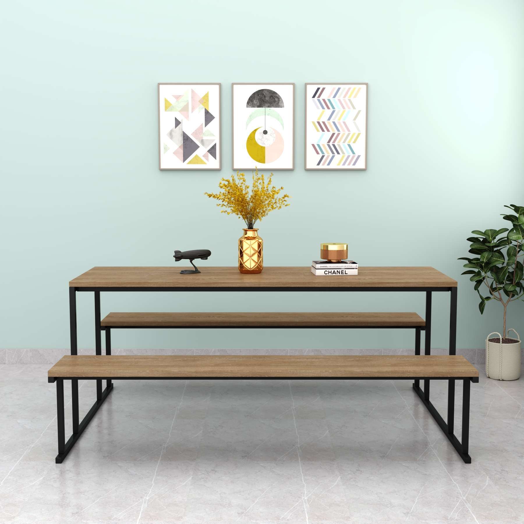 Home TUBULAR Benches Steel Dining Table Set with 2 Benches