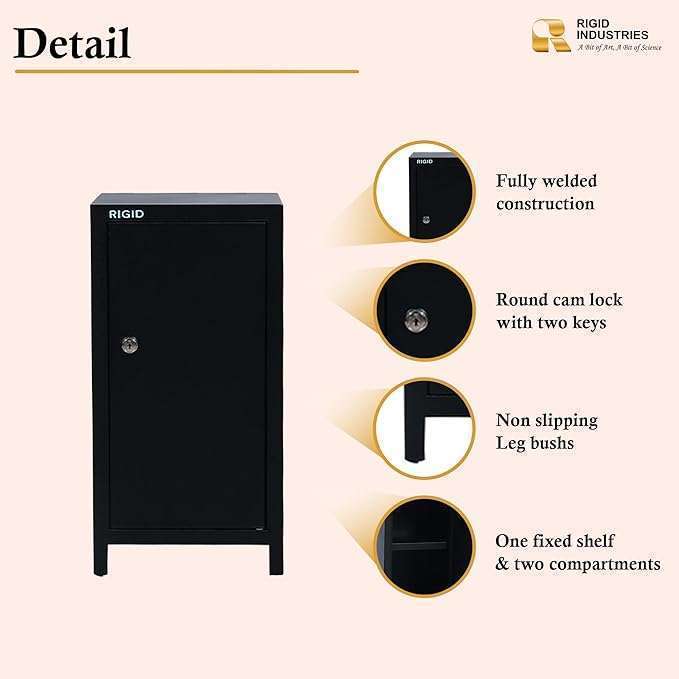 • Secure Locking Mechanism: Equipped with a reliable locking system with a round cam lock and two keys, the mini steel locker provides added security and peace of mind for your valuables.