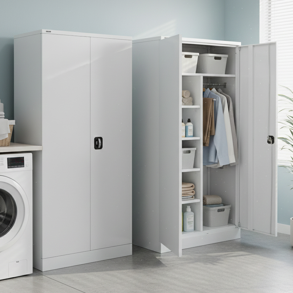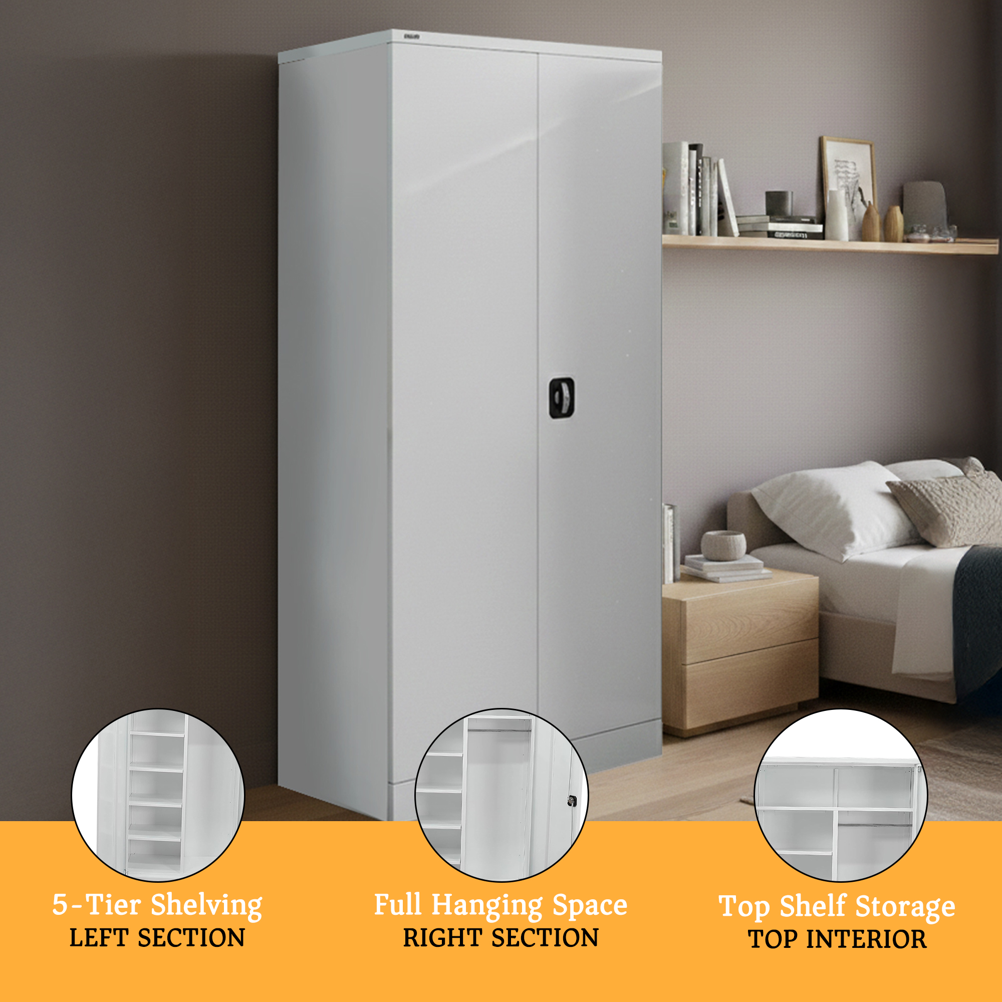 Steel wardrobe with Clothes-Hanging Space Shelving